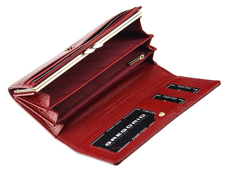 Kožená dámska peňaženka v luxusnej červenej farbe je vďaka veľkému množstvo kapsičiek nielen krásna, ale aj praktická.