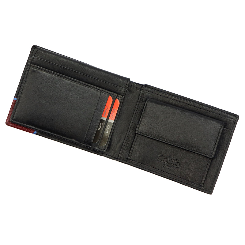 Luxusná pánska kožená peňaženka Pierre Cardin pojme veľa vecí. Peňaženka má 2 priehradky na bankovky a jednu na kovové mince. Ďalej je vo vnútri pánskej peňaženky 9 priehradiek vhodných na karty a tri väčšie vrecká na technický preukaz od vozidla, alebo iný väčší doklad.