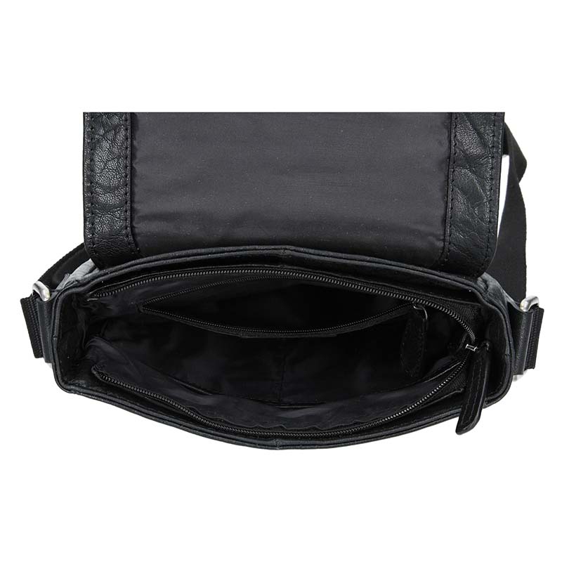 Pánska taška cez rameno crossbody je vyrobená z kvalitnej prírodnej kože. Vnútri pánske crossbody nájdeme jednu veľkú kapsu a jednu menšiu so zipsom, na prednej vonkajšej strane pod chlopňou potom ďalšie a tiež zadná strana je vybavená väčším vreckom na zips.