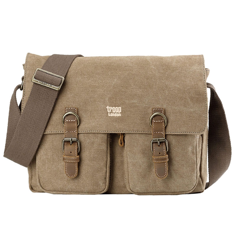 U značkové tašky cez rameno Troop London je ako materiál použité kvalitné pevné plátno. Taška obsahuje spústy kapies, tak že je nielen krásna, ale aj praktická a pojme veľa vecí.