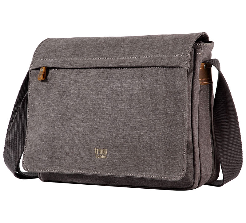 Veľká značková brašna Troop London je vďaka veľkosti vhodná aj na notebook s veľkosťou uhlopriečky až 13,5 palcov. Ako materiál bolo použité kvalitné pevné plátno. Taška osahuje spústy kapies, tak že je nielen krásna, ale aj praktická a pojme veľa vecí.