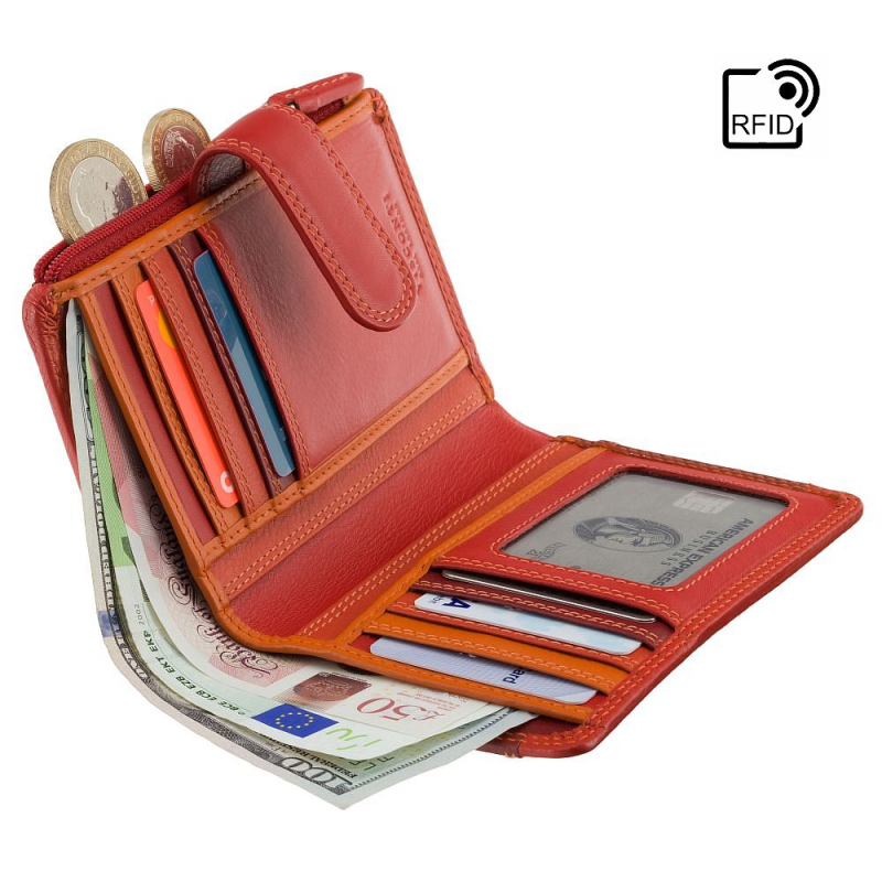 Značková dámska peňaženka Visconti sa vyznačuje na dotyk príjemnou mäkkou kožou, dekorovanou dvojitým obšitím. Aj pri použití kvalitnej prémiovej prírodnej kože má ale stále vynikajúci pomer ceny v kombinácii s trvanlivým, praktickým a nadčasovým dizajnom.