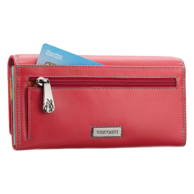 Značková dámska peňaženka Visconti sa vyznačuje na omak príjemnú mäkkou kožou, dekorovanou dvojitým obšitím. Aj pri použití kvalitnej prémiovej prírodnej kože má ale stále vynikajúci pomer ceny v kombinácii s trvanlivým, praktickým a nadčasovým dizajnom.