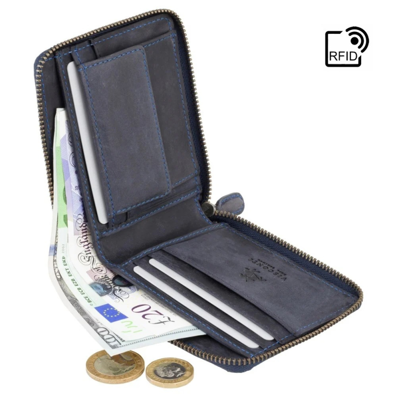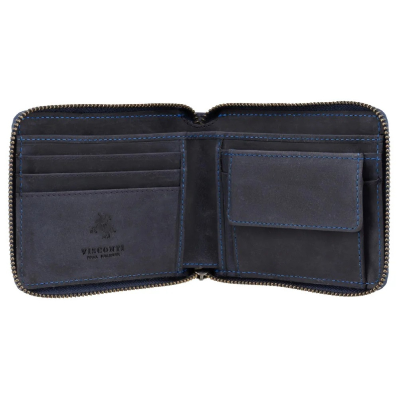 Značková pánska kožená peňaženka so zipsom sa vyznačuje na dotyk príjemnou prémiovou prírodnou kožou, kvalitným ručným prešitím a vkusnou podšívkou Visconti.