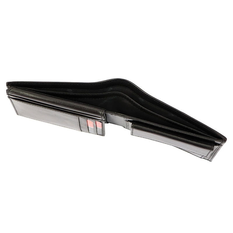 Luxusni pánska peňaženka Pierre Cardin má 2 priehradky na bankovky a jednu na kovové mince. Ďalej je vnútri pánske peňaženky 9 priehradiek vhodných na karty a tri väčšie na technický preukaz, alebo iný doklad.