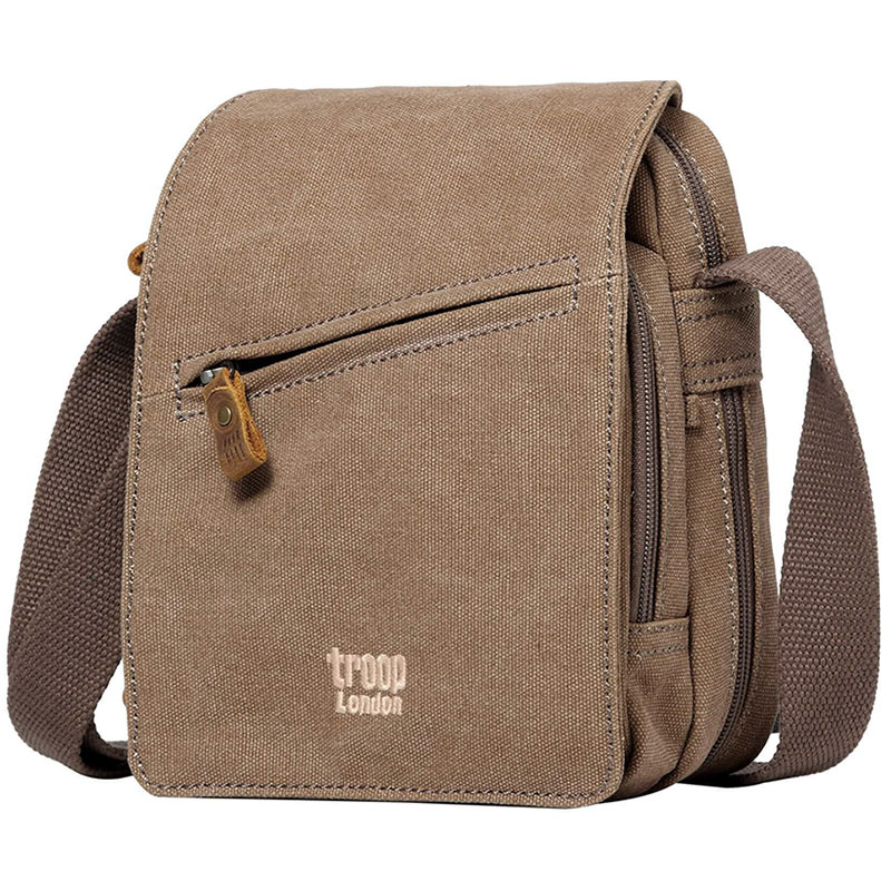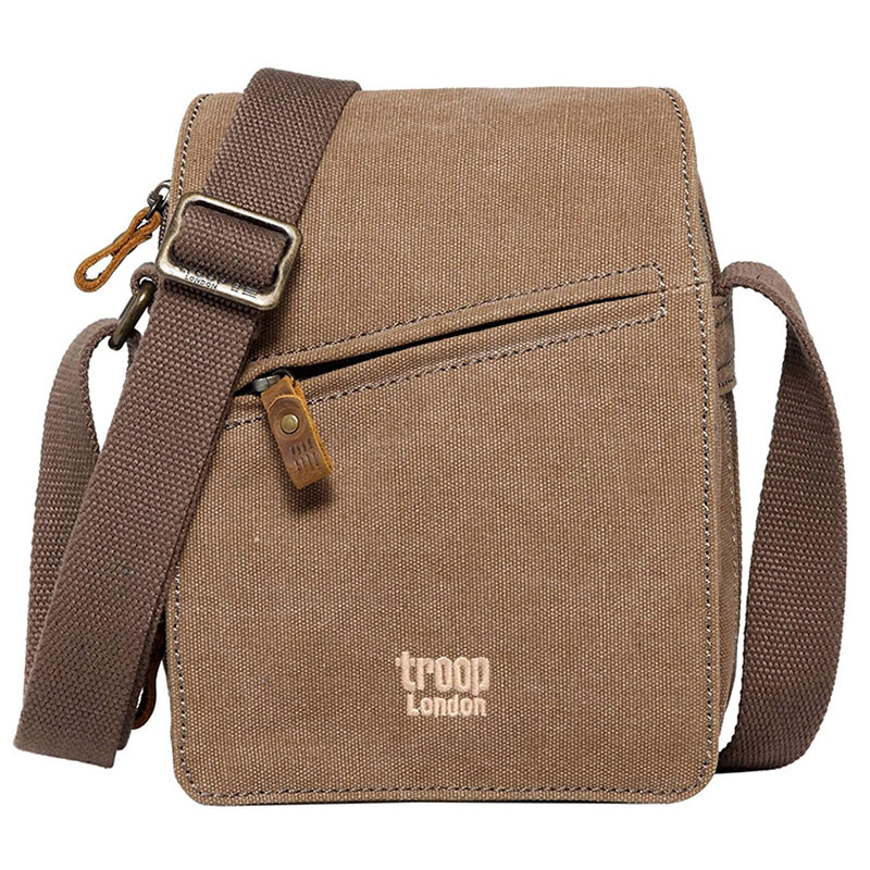 Značková crossbody Troop London je vyrobená z kvalitného pevného plátna. Predná časť obsahuje vrecká na mobilný telefón, perá a iné drobnosti, hlavné vrecko so zipsom má vo vnútri sieťované vrecko.